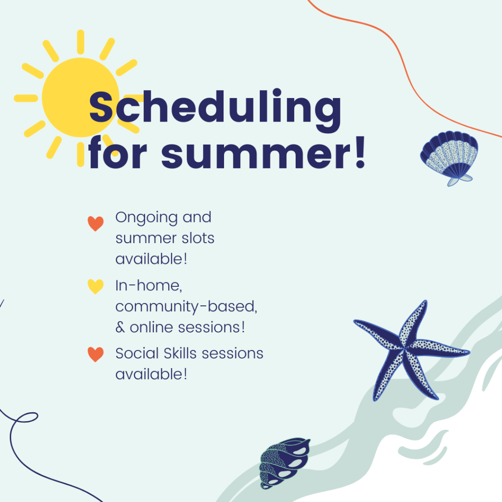 Summer Speech Therapy Sessions – now scheduling! Posted byqueuemarkMarch 8, 2023Posted inUncategorized Share this: Share on X (Opens in new window) X Share on Facebook (Opens in new window) Facebook Like Loading... Related